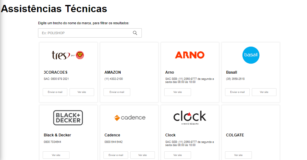 2) Você será direcionado para uma página onde constam todos os contatos das assistências.