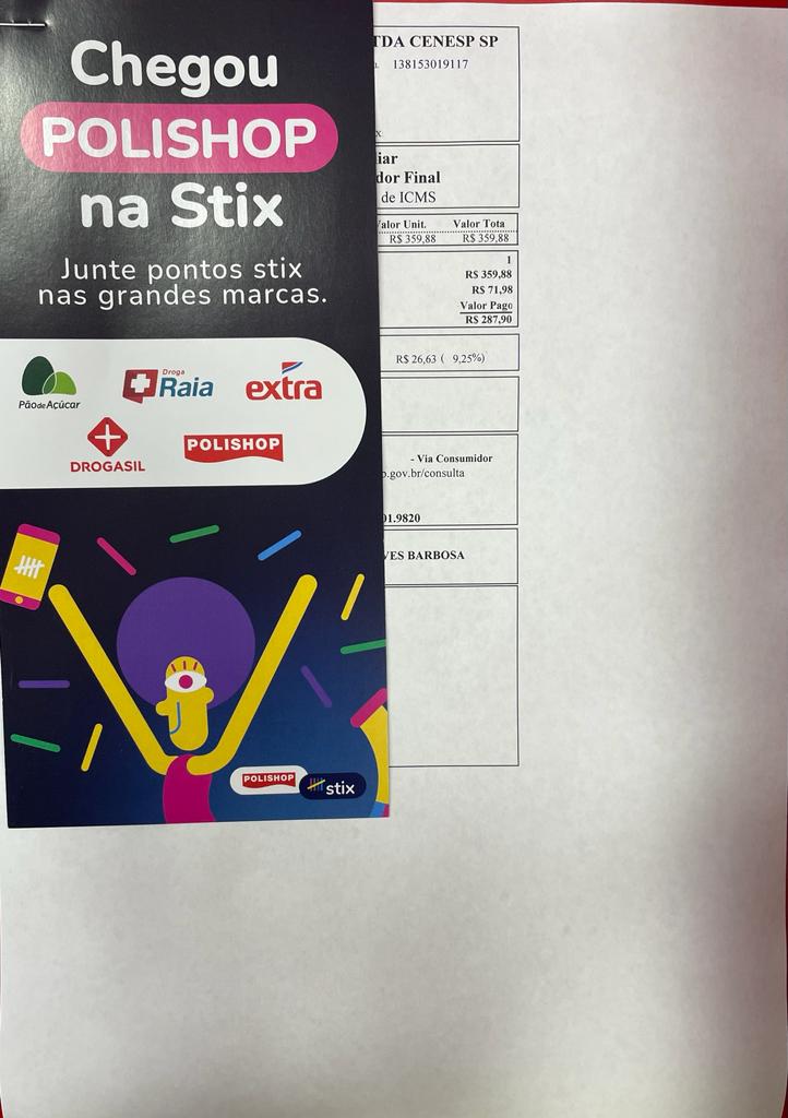 E para divulgar o programa STIX com os nossos clientes, sugerimos que todos anexe um folheto da Stix junto a nota fiscal do cliente, conforme imagem abaixo: