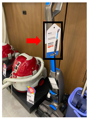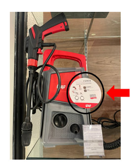 A tag deve ser exposta na Limpadora de Piso Sem Fio WAP, conforme imagem ao lado.