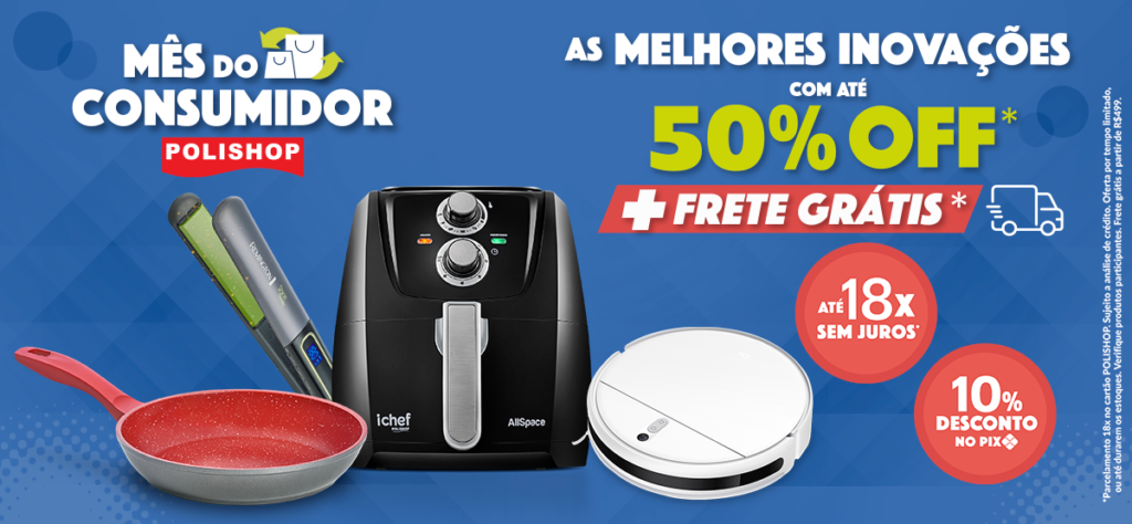 Vamos divulgar os últimos dias do Mês do Consumidor Polishop! Use o áudio em alta da semana e mostre aos seus clientes as principais ofertas, com até 50% OFF e parcelamento em até 18x sem juros no cartão Polishop. Importante trazer o senso de urgência de que são os últimos dias com essas condições.