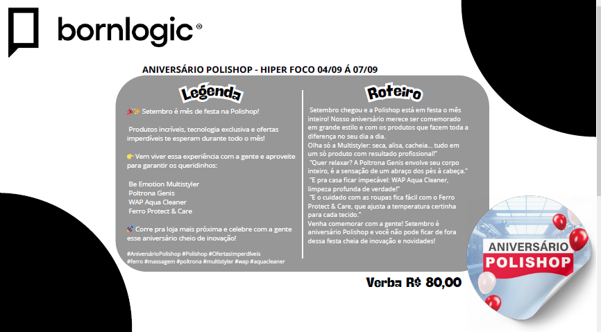 🎊 Vamos transformar esse aniversário em uma verdadeira festa, cheia de cores, sabores e união entre todas as lojas Polishop! 🚀