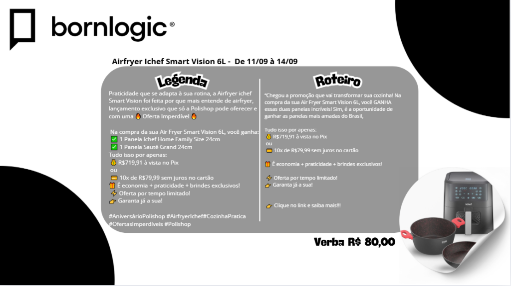 Serão 2 Displays: O Rolo lateral que desliza quando abrimos a gaveta da Airfryer (Logo enviaremos o informativo de exposição) e a Testeira de acrílico transparente que vai ser fixada em cima da Airfryer com a comunicação sobre os atributos do produto!