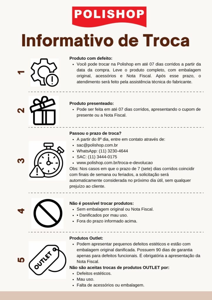Ressaltamos que a realização de trocas seguirá o mesmo horário de atendimento.