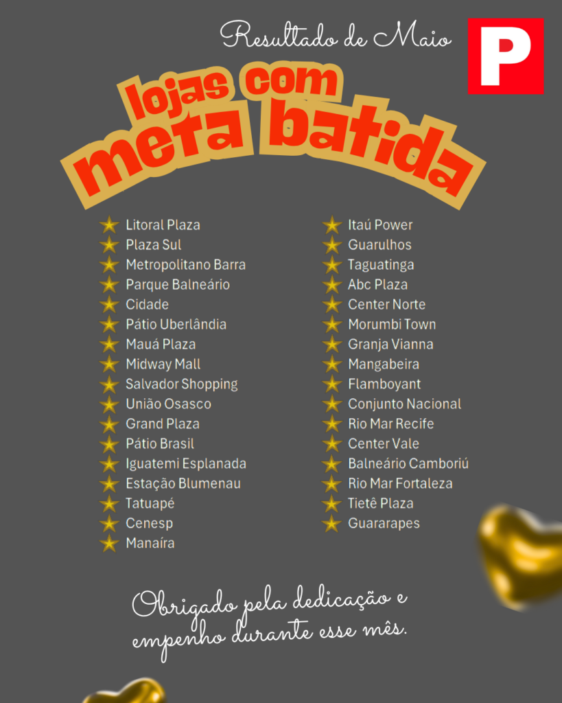 O Mês de Maio foi excelente!!! As nossas lojas estão de Parabéns!!! Aqui nada pode passar em branco e quando temos motivos, nós comemoramos!!!