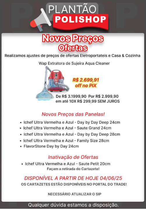 ✅ 05/06 a 08/06 – Panelas Polishop.