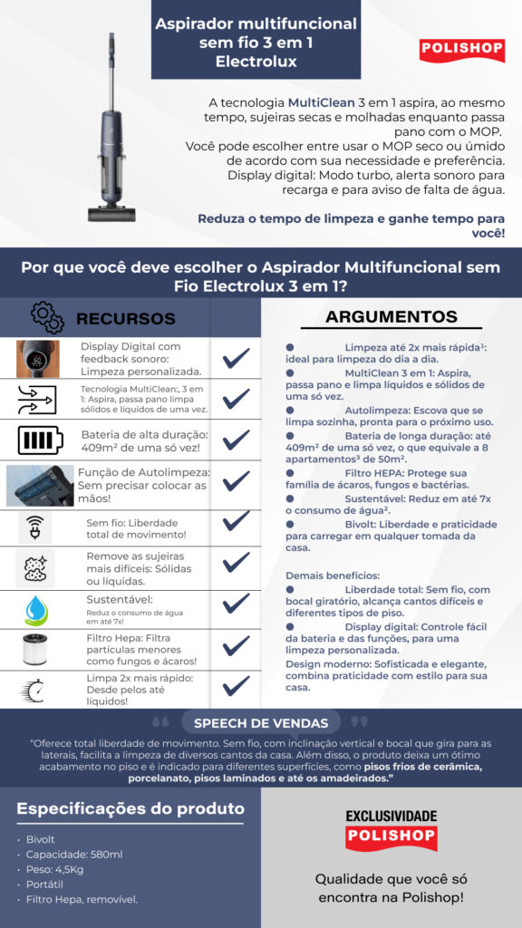 Leiam com atenção para conhecer todos os diferenciais e argumentos de venda.