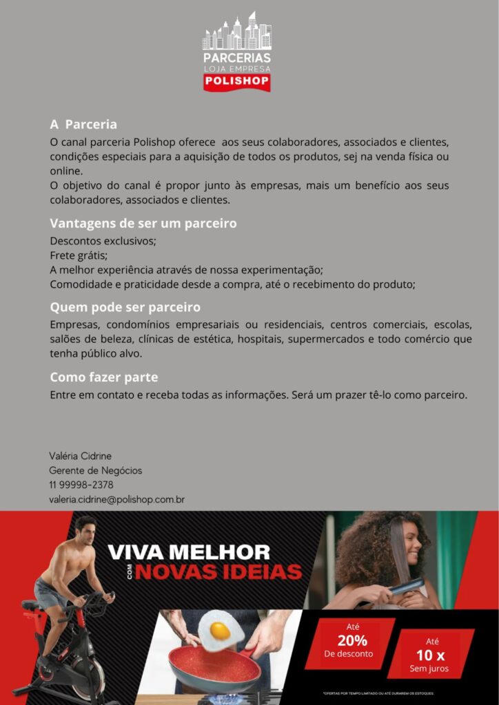 Para mais informações: valeria.cidrine@polishop.com.br
