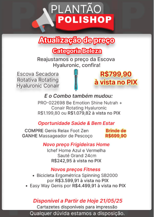 💲Aproveitem os descontos para apresentar mais produtos da loja, faça seus clientes conhecerem todos os nossos mundos e categorias, introduza em sua venda nossos produtos winners como: Modelador e secador Multi Styler, Escova Rotating Hyaluronic, Smart Vision, Protect Care, Cadeira Massageadora Genis Relax Flex, Panelas Polishop.