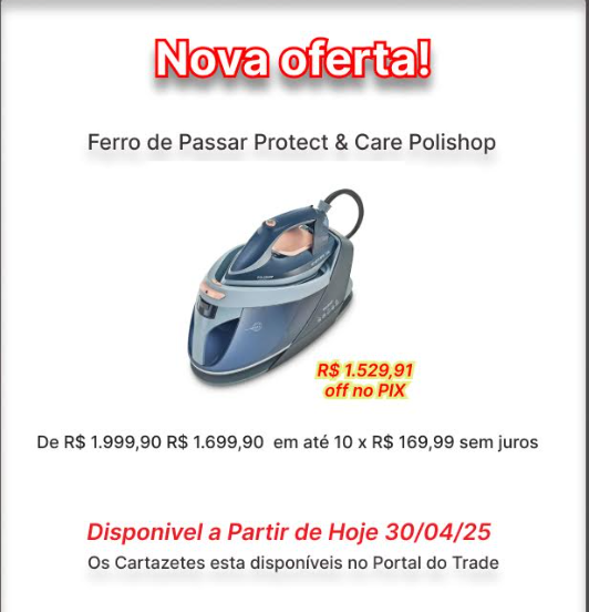 Para esta semana importantíssima do Dia das Mães estamos investindo nos produtos foco e nos produtos de Beleza para nossas ofertas, divulgações e principalmente apresentação e demonstração em lojas!!!