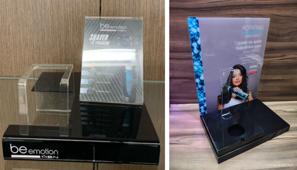 Display da Rotating Hyaluronic e dos Barbeadores da linha Be emotion Men (Shaver Toutch e Aqua Pro).