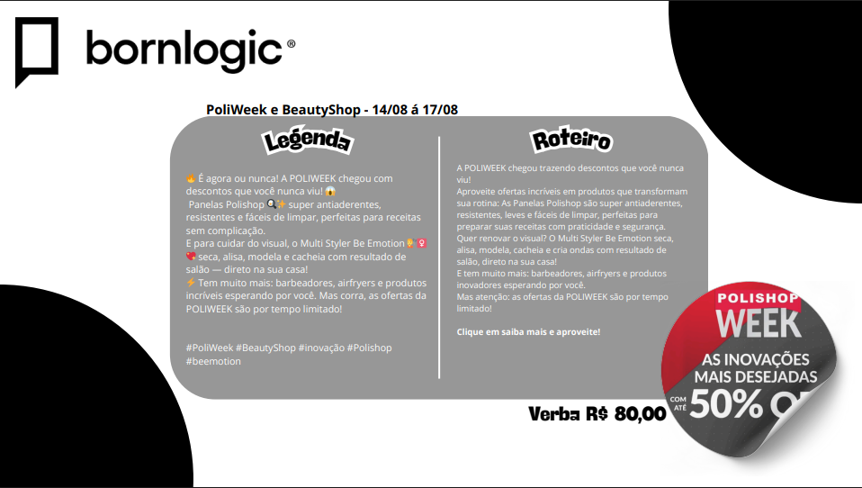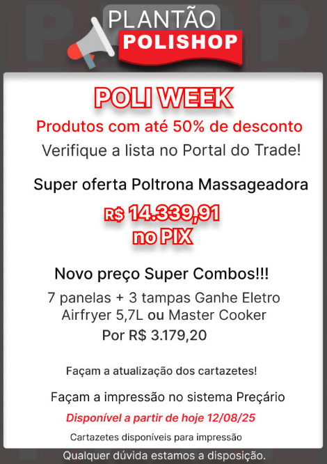 São produtos de todas as categorias com até 50% de desconto, a chance de potencializar as vendas neste período está ainda maior, aproveite para oferecer as melhores oportunidades aos seus clientes!!!