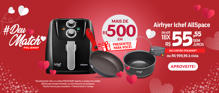 Devido ao grande sucesso, prorrogamos as campanhas Categoria Airfryer e Categoria Fitness até o final do mês, aproveitem para vender muito e acumular uma graninha extra para trocar em PRODUTOS POLISHOP!