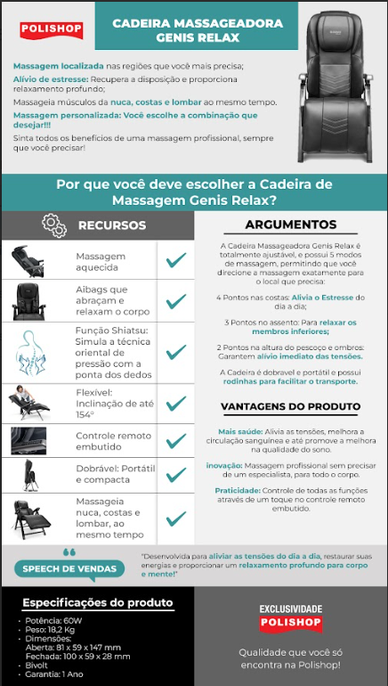 Lançamento – Cadeira Massageadora Genis Relax Flex